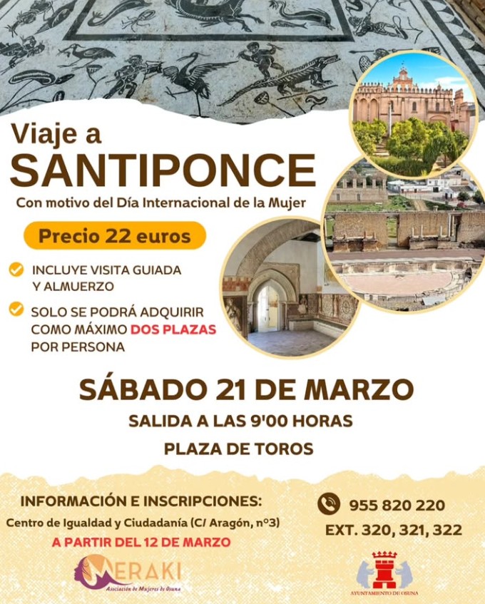 La Delegación municipal de Igualdad del Ayuntamiento de Osuna, en colaboración con la Asociación de Mujeres Meraki, ha organizado una excursión cultural…